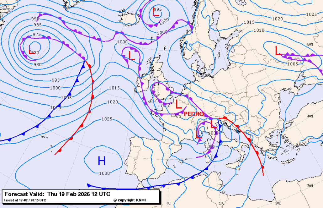 Une nouvelle dépression baptisée Pedro va traverser notre pays ce jeudi. Le front froid, associé, qui sera très musclé, balayera notre région cette nuit. A l’arrière, une traîne très active va prendre le relais, puis les précipitations se bloqueront sur les Alpes du Nord dès jeudi soir par orographie. Les cumuls de neige seront donc encore notables dès la moyenne montagne. Vendredi, les précipitations seront en régression, car le champ de pression regonflera nettement par l’Ouest. Le week-end et le début de semaine prochaine s’annoncent donc plus calme, mais des passages nuageux devraient tout de même circuler, en marge des fronts océaniques qui toucheront la moitié Nord de la France.